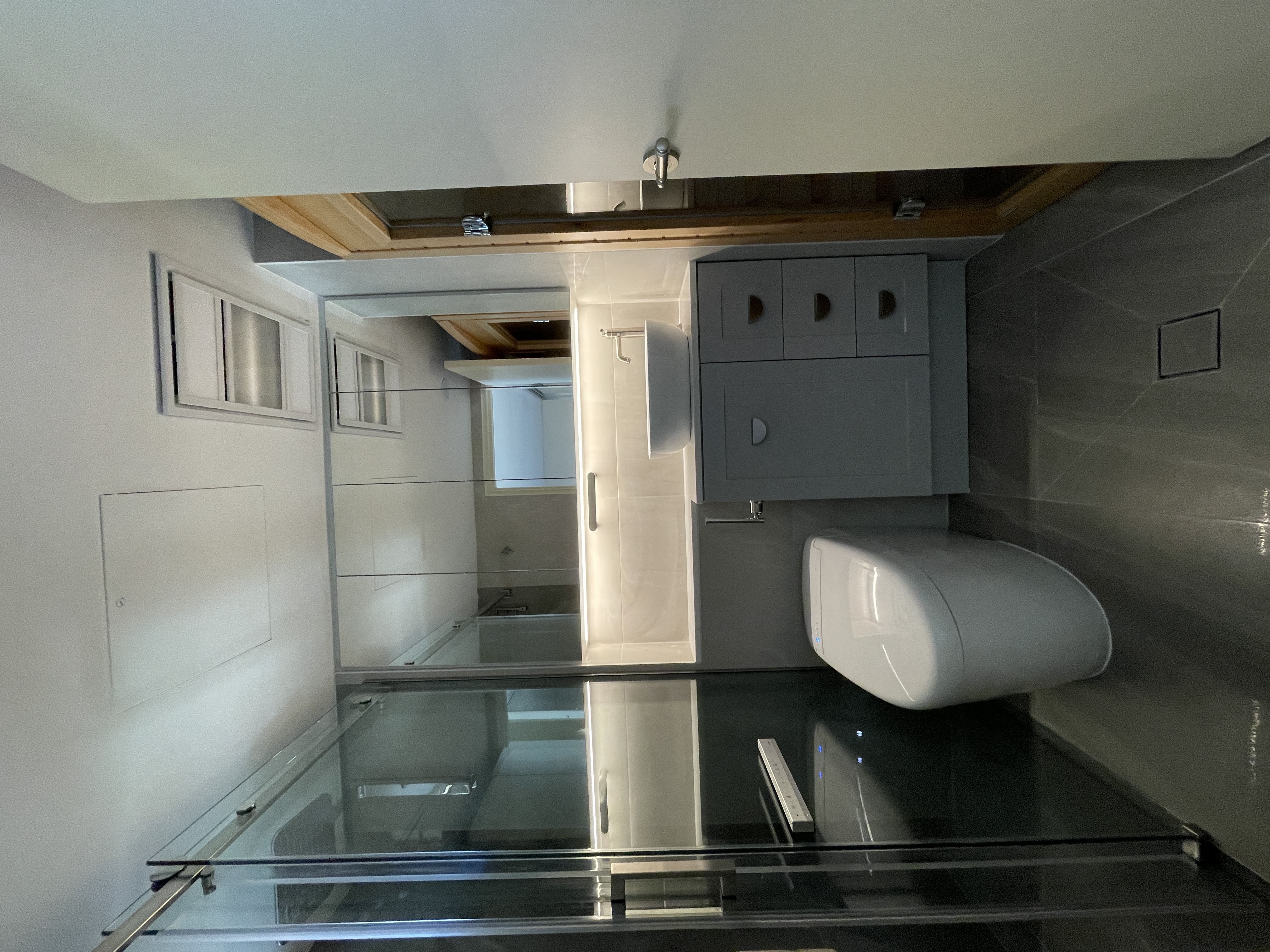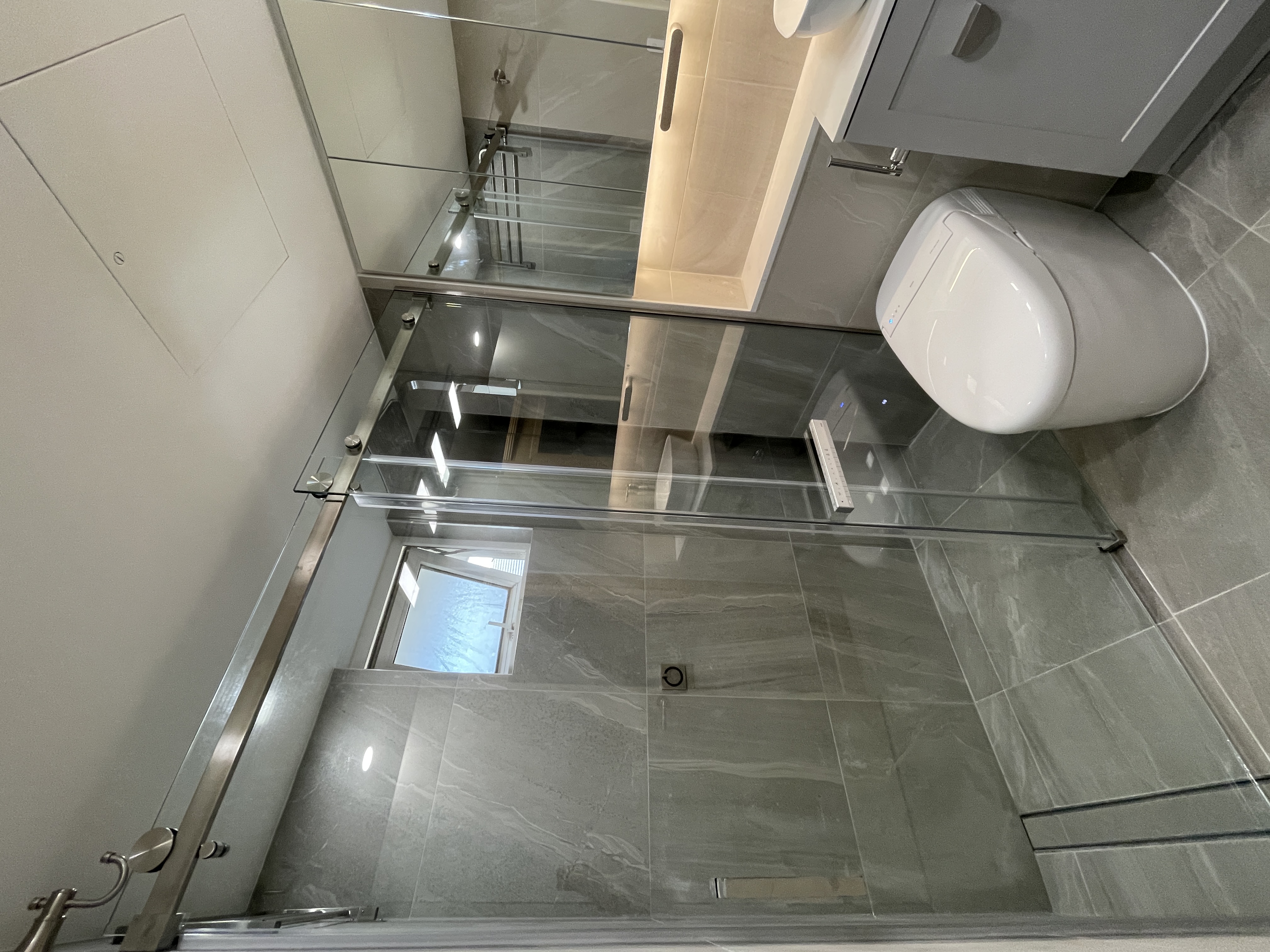 This comprehensive bathroom renovation solved persistent water leakage and mould issues at their source. We designed and installed a custom vanity to perfectly utilize every inch of the space. The new wet-area now seamlessly incorporates a home sauna, with a future-proof design that allows it to be easily converted back to a standard shower.